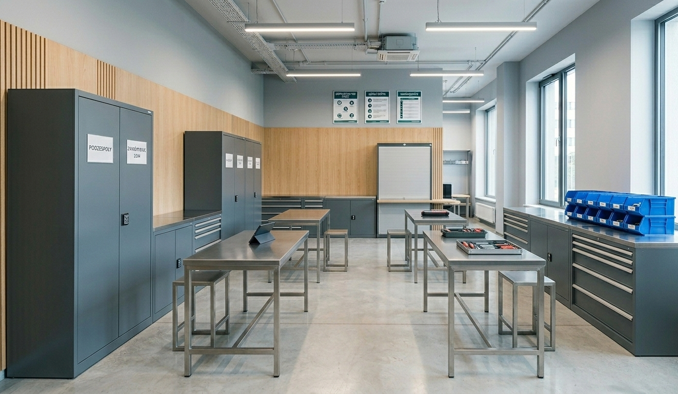 Die Firma Skander bietet eine umfangreiche Kollektion an Metallmöbeln. Unsere Schränke und Regale sind robust, ästhetisch und vor allem funktional. Die Konstruktion unserer Möbel folgt den neuesten technologischen Lösungen. Das vielfältige Design erfüllt die Anforderungen der schönsten Büro- und Lagerraumausstattungen.